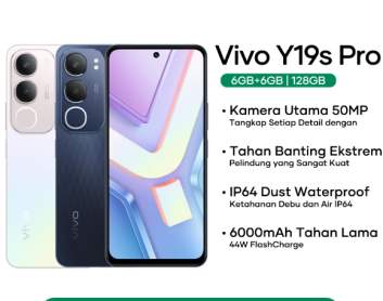 Tersedia dalam 3 varian RAM yaitu 4GB untuk varian 4/64GB dan 4/128GB, serta 6GB untuk varian tertinggi 6/128GB yang dapat diperluas dengan extended RAM hingga total efektif 8GB atau 12GB, namun tidak ada varian RAM 8GB atau 12GB real dan tidak ada varian storage 256GB, sehingga pengguna yang membutuhkan RAM lebih besar harus mempertimbangkan model lain seperti Vivo Y27 atau seri V. Kelebihan utama Vivo Y19s Pro mencakup baterai super jumbo dengan pengisian sangat cepat yang jarang ditemukan di entry-level, layar sangat terang untuk outdoor, dual speaker lantang, fitur AI canggih, dan ketahanan IP64+MIL-STD untuk tahan air dan banting, sementara kekurangannya adalah chipset Unisoc T612 yang tidak sekencang Snapdragon atau Helio G series, layar HD+ yang tidak se-tajam Full HD, tidak ada NFC, dan tidak ada 5G, menjadikannya pilihan terbaik untuk yang mencari smartphone dengan daya tahan baterai luar biasa di harga sangat kompetitif namun bukan untuk power user yang butuh performa gaming berat atau fotografi advanced.