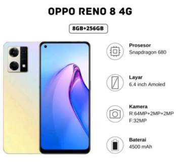 Oppo Reno 8 4G 8GB/256GB: Varian 4G yang juga populer dengan storage generous dan harga lebih terjangkau.